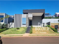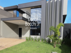 3 suítes (1 master c/ closet), acabamentos em mármore branco e travertino, pé-direito duplo, iluminação e paisagismo. AC 207 m². Conforto e estilo moderno em condomínio charmoso de Ribeirão Preto.